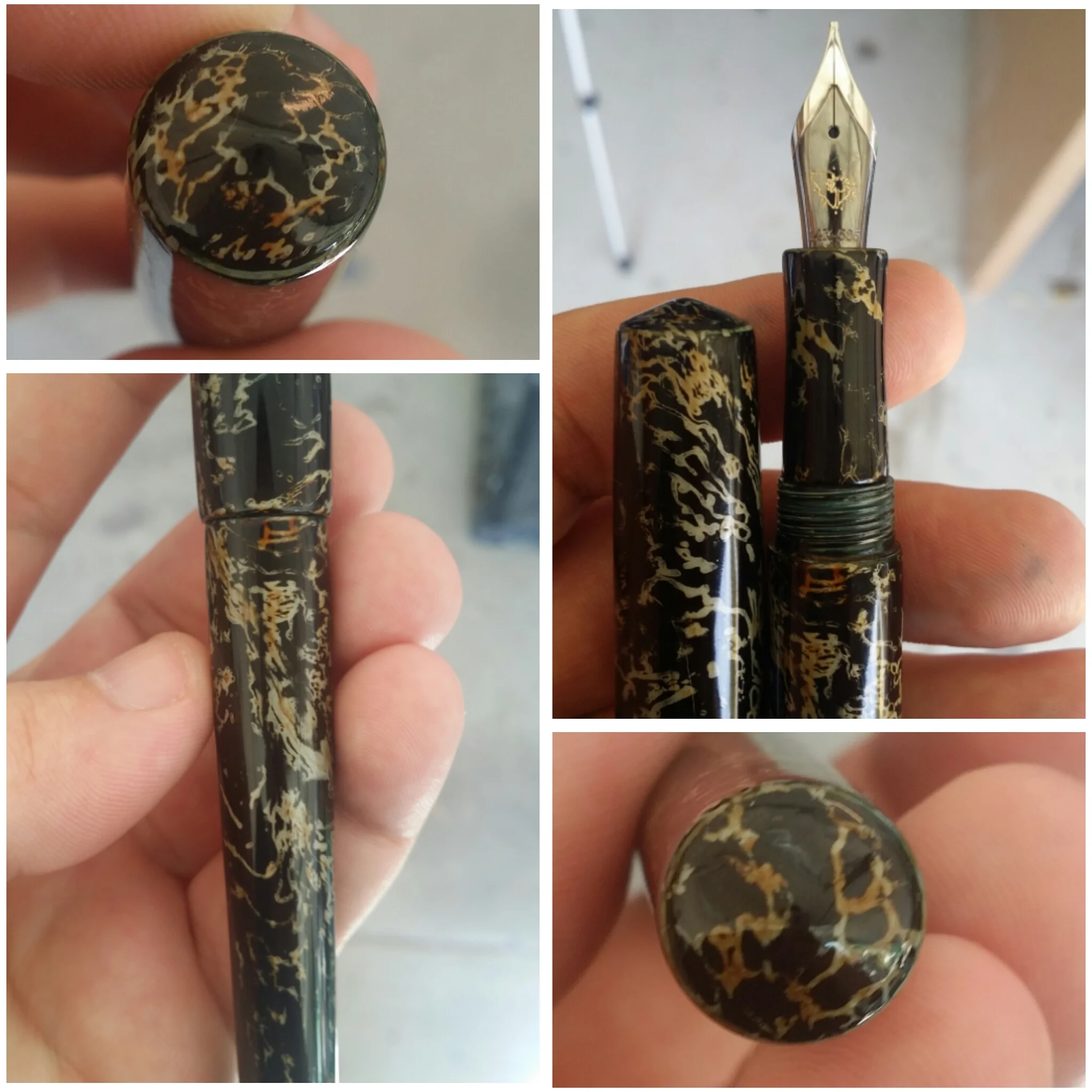 This is a transparent acrylic pen with a tamenuri finish over the top. Very thin coats have to be applied with careful sanding to achieve this finish.